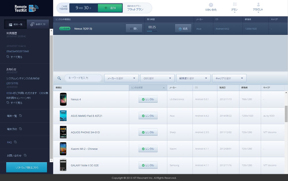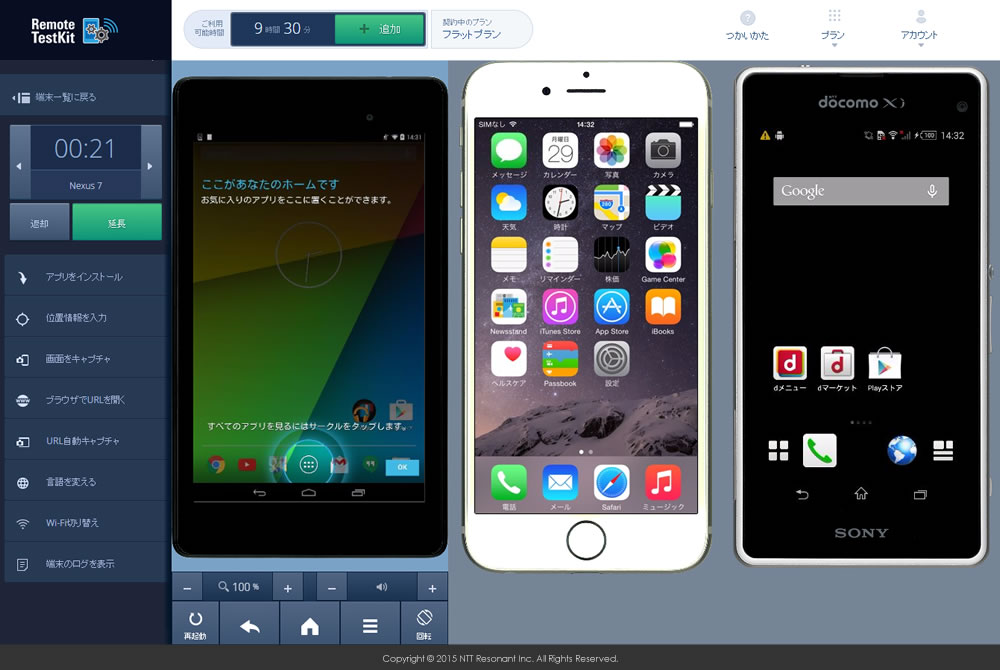 アプリ開発時からリリース後の動作確認まで、300機種以上の実機の中から自由に検証が可能。