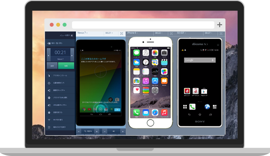 - PC上に複数端末を同時表示することにより、携帯固有の表示崩れがないかを比較しながら確認できます