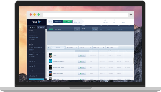 最新機種を含む500種類以上のスマートフォン実機を使って今すぐアプリ・サイトのテストが可能。