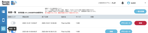 通常、録画・実行記録は7日間で自動的に削除されますが、本リリースにて、削除したくない記録をロックができるようになりました。