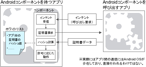 コンポーネントが呼び出された際は、呼び出したアプリがホワイトリストに登録されているかどうかをチェックすることで、動作の制限が可能です(下図参照)。